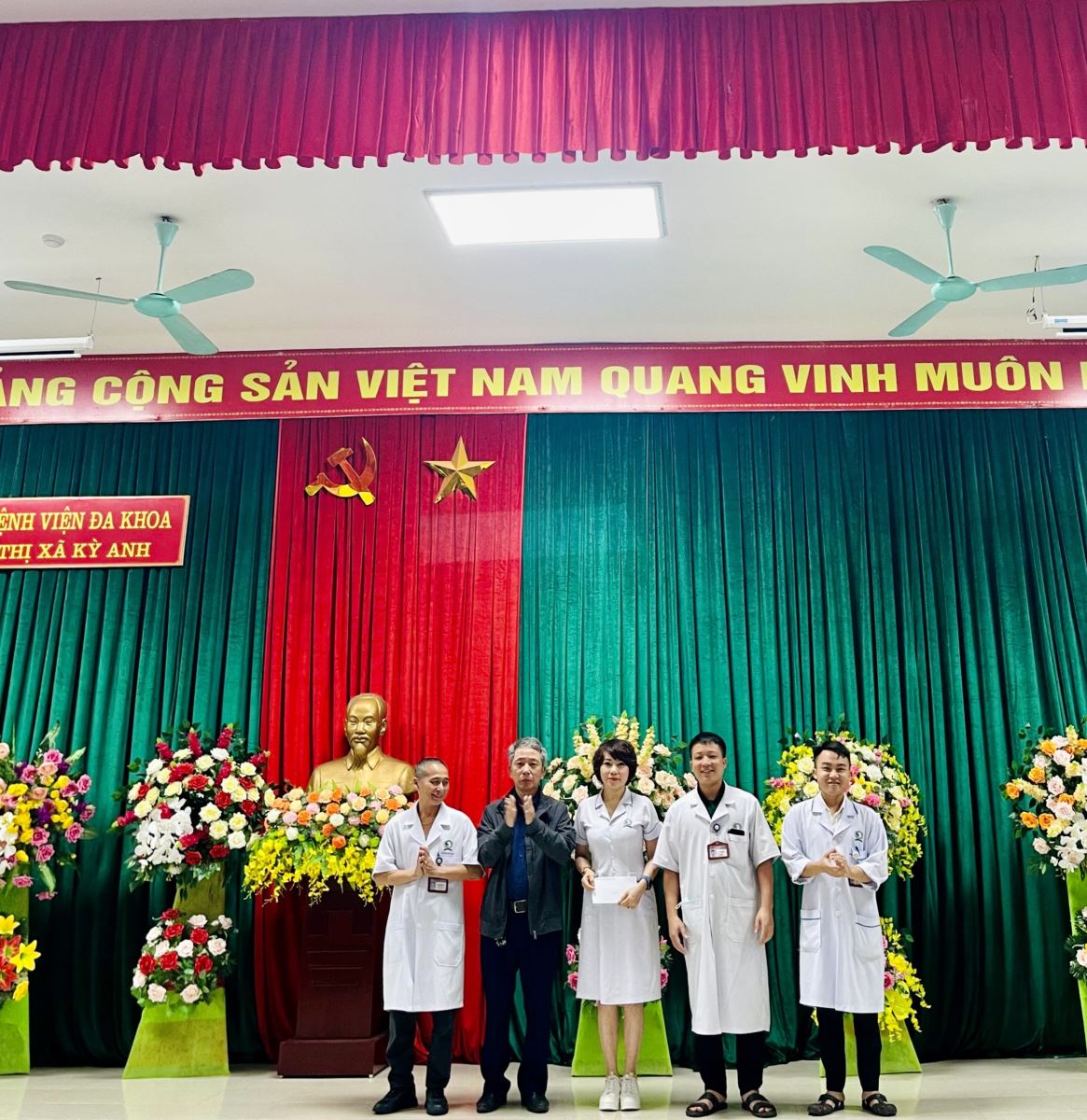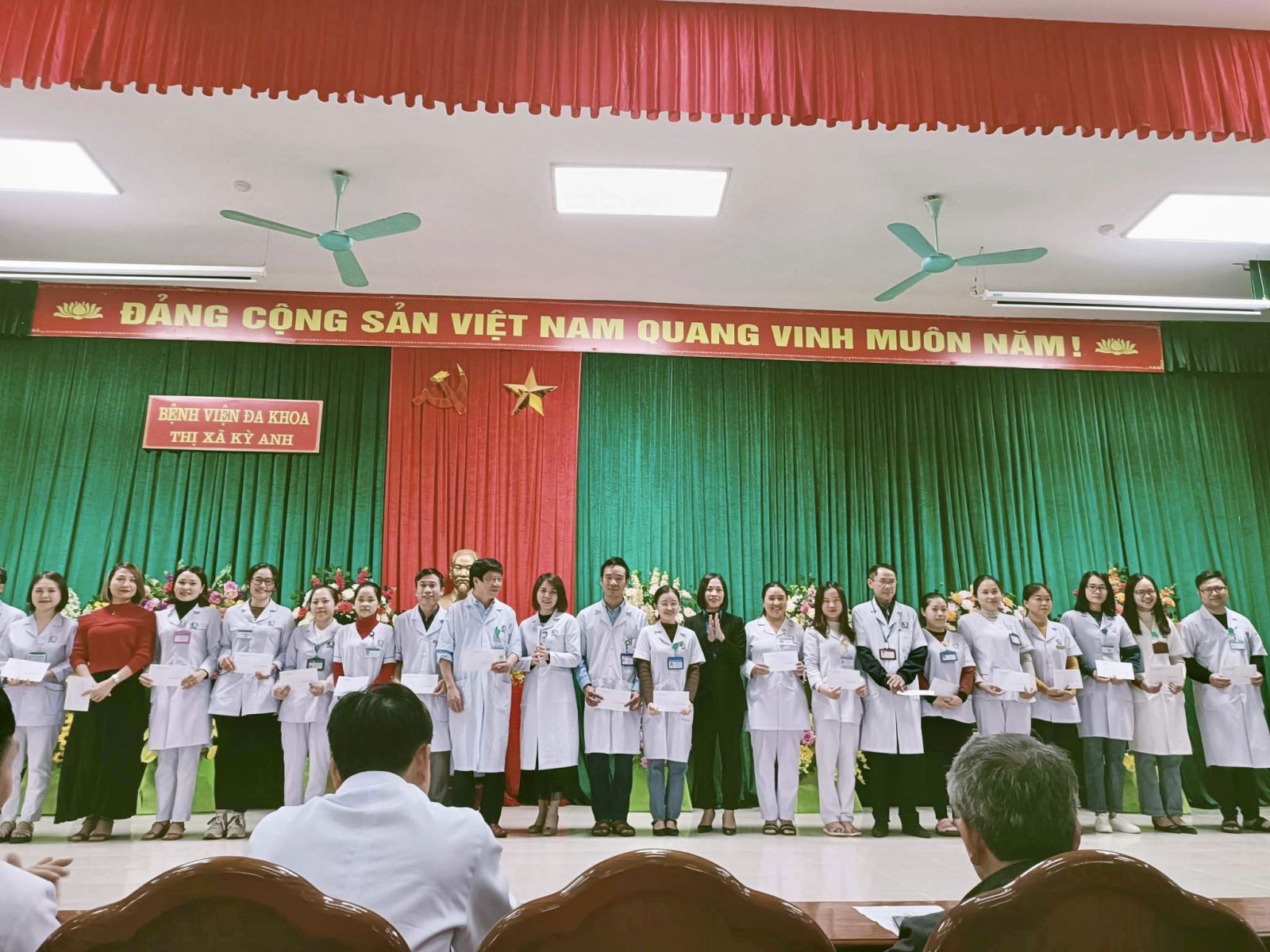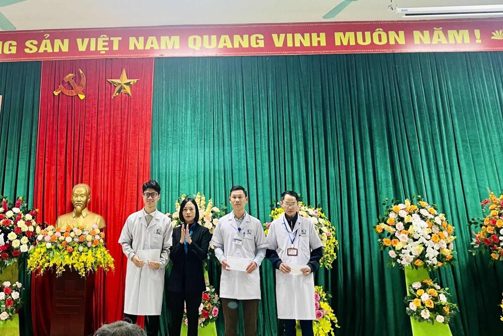 Tại buổi chào cờ, BCH Công đoàn biểu dương tinh thần tình nguyện hiến máu trong ca cấp cứu bệnh nhân nguy kịch của Đoàn viên Đào Văn Hậu (Khoa PT GMHS), đoàn viên Tô Phong An (khoa HSCC), Đoàn viên Phạm Phước Trung Nghĩa (Khoa CĐHA).