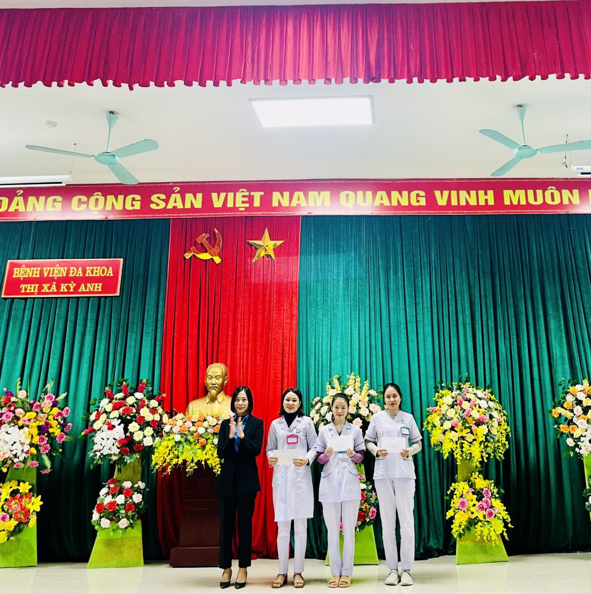 Tại buổi chào cờ, đồng chí Nguyễn Thị Kim Oanh phát biểu ghi nhận các kết quả đã đạt được của toàn thể cán bộ, nhân viên bệnh viện trong tháng vừa qua, đồng thời yêu cầu khắc phục những vấn đề còn tồn tại.