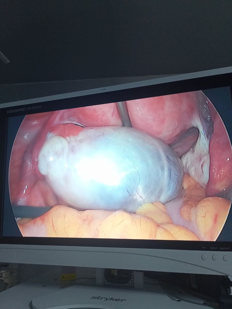 Sau hơn 1 giờ phẫu thuật nội soi, ê kíp phẫu thuật đã bóc thành công khối u nang buồng trứng trái, kích thước khoảng 8x6 cm, bảo tồn được buồng trứng. Sau phẫu thuật, sức khỏe của người bệnh ổn định, hồi phục tốt.
