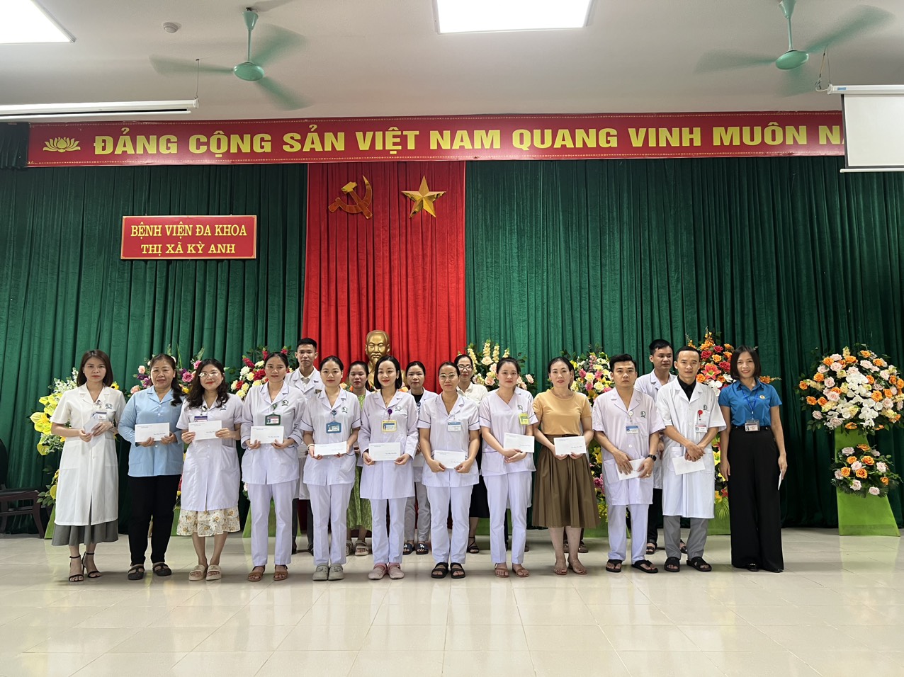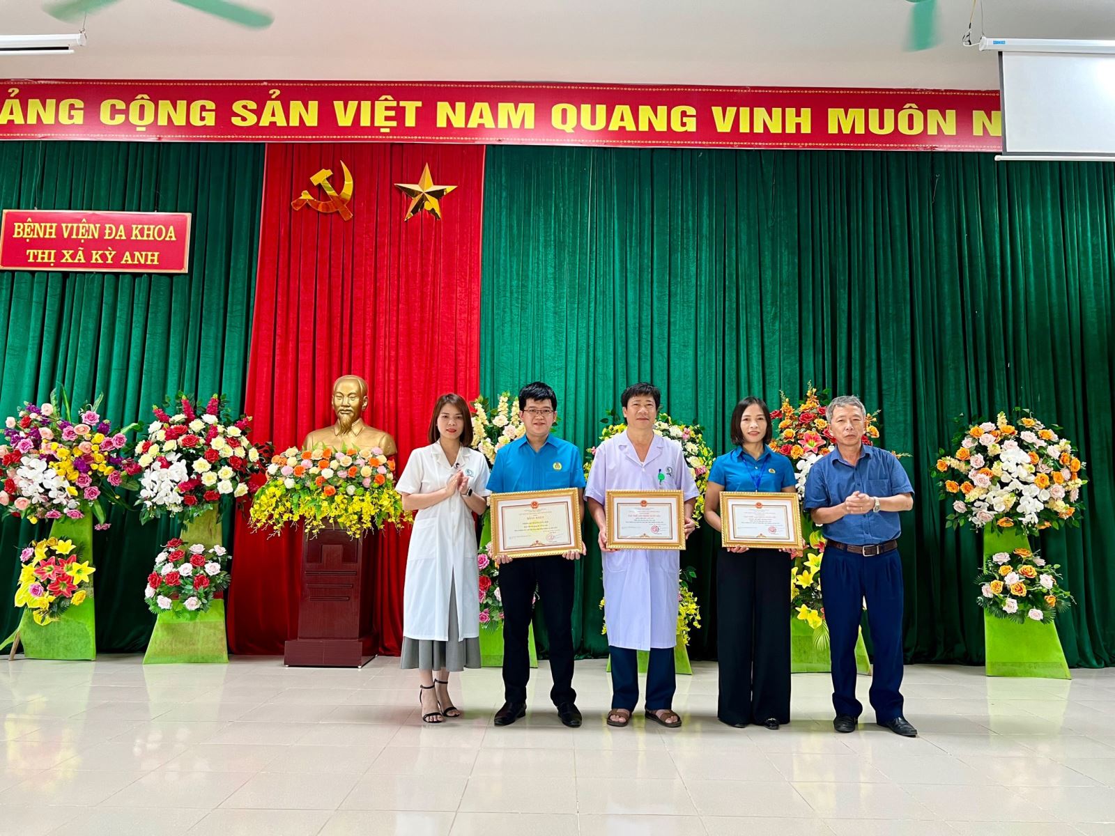 Tại buổi chào cờ, Đồng chí Nguyễn Thị Lê Na, TP TCHC đã thông qua Quyết định về việc khen thưởng thành tích thực hiện nhiệm vụ năm 2022 của UBND tỉnh. Bệnh viện đa khoa thị xã Kỳ Anh vinh dự là 1 trong 2 tập thể ngành y tế nhận Cờ thi đua của UBND tỉnh. Phòng TCHC, Khoa Hồi sức cấp cứu được trao tặng Danh hiệu Tập thể lao động xuất sắc; Phòng KHTH được trao tặng Bằng khen tập thể; Đồng chí Nguyễn Tiến Dũng-TP Điều dưỡng, Đ/c Nguyễn Thanh Long- phụ trách khoa PT GMHS được trao tặng Bằng khen cá nhân.