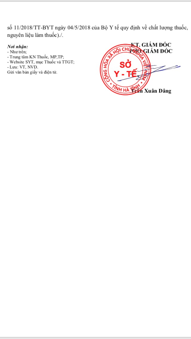 Công văn số 2274/SYT- NVD ngày 11 tháng 8 năm 2020 về việc đình chỉ lưu hành thuốc không đạt tiêu chuẩn chất lượng