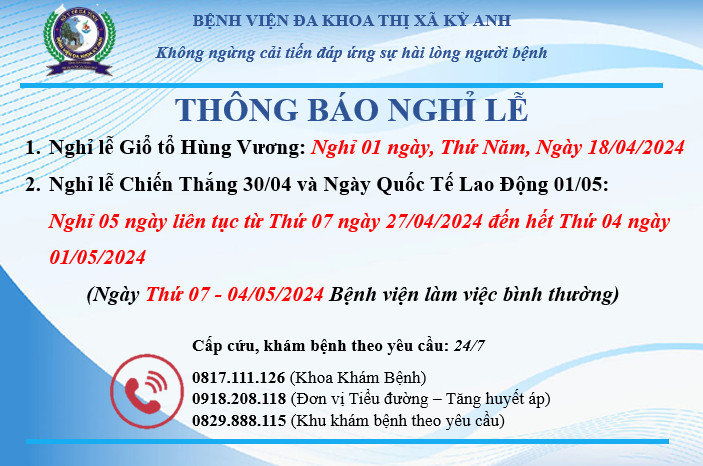 + Bản giấy gửi về địa chỉ: Phòng văn thư - Bệnh viện đa khoa thị xã Kỳ Anh